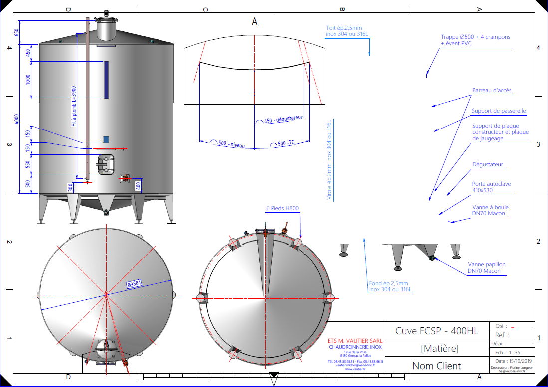 Hauteur des cuves inox :